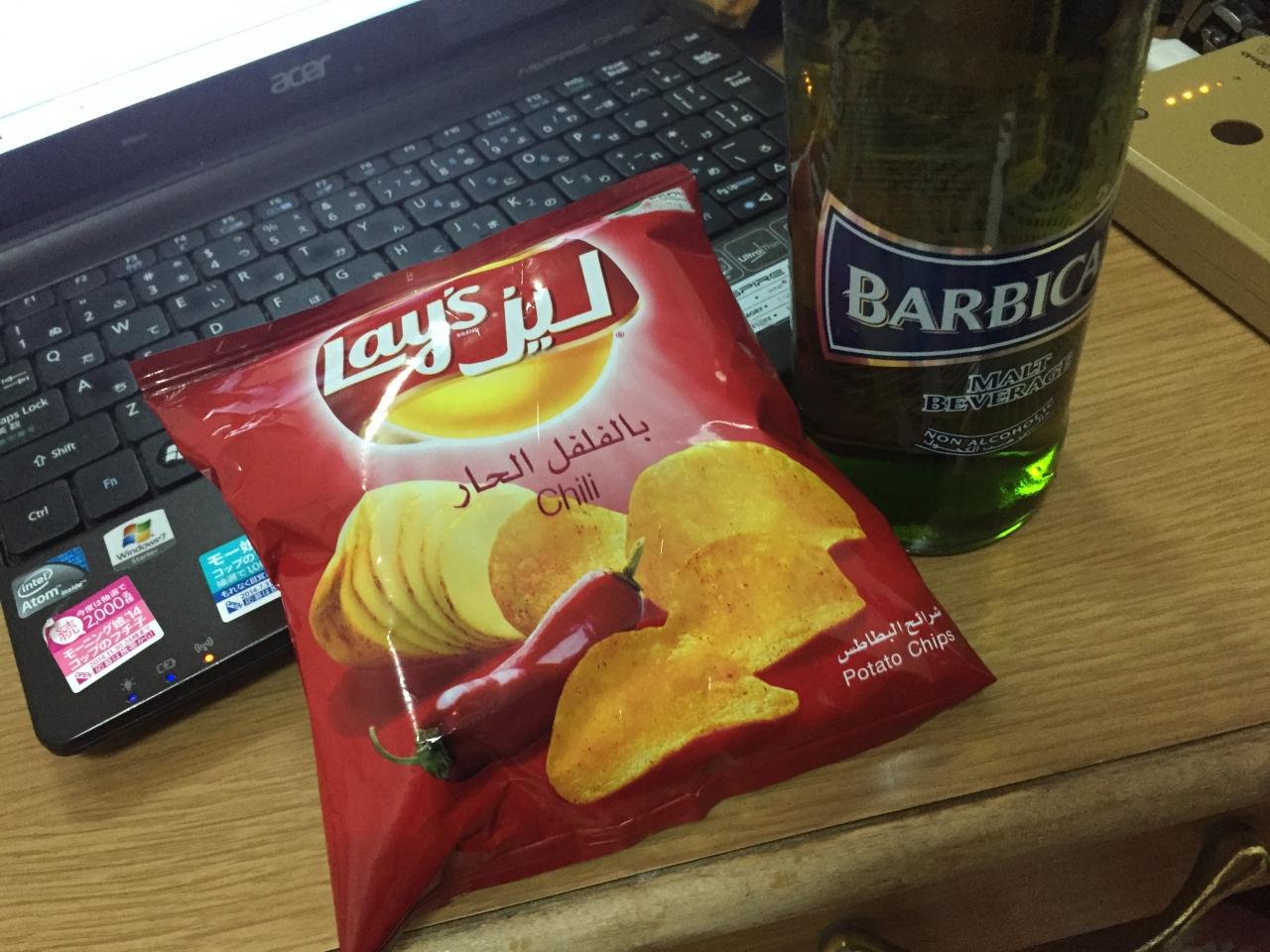 部屋に戻ってスナック菓子をモシャモシャ。