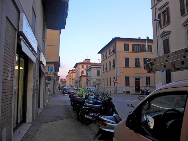 12/30今日は一日中フィレンツェを見学するために0600起床.昨日の残りのスパゲティや野菜,パン,そして野菜から作ったスープなどで,朝食をとり,0735にVillaを出発. Via del Ponte alle Mosseをバス停留所へ.まだ夜が明けたばっかり.