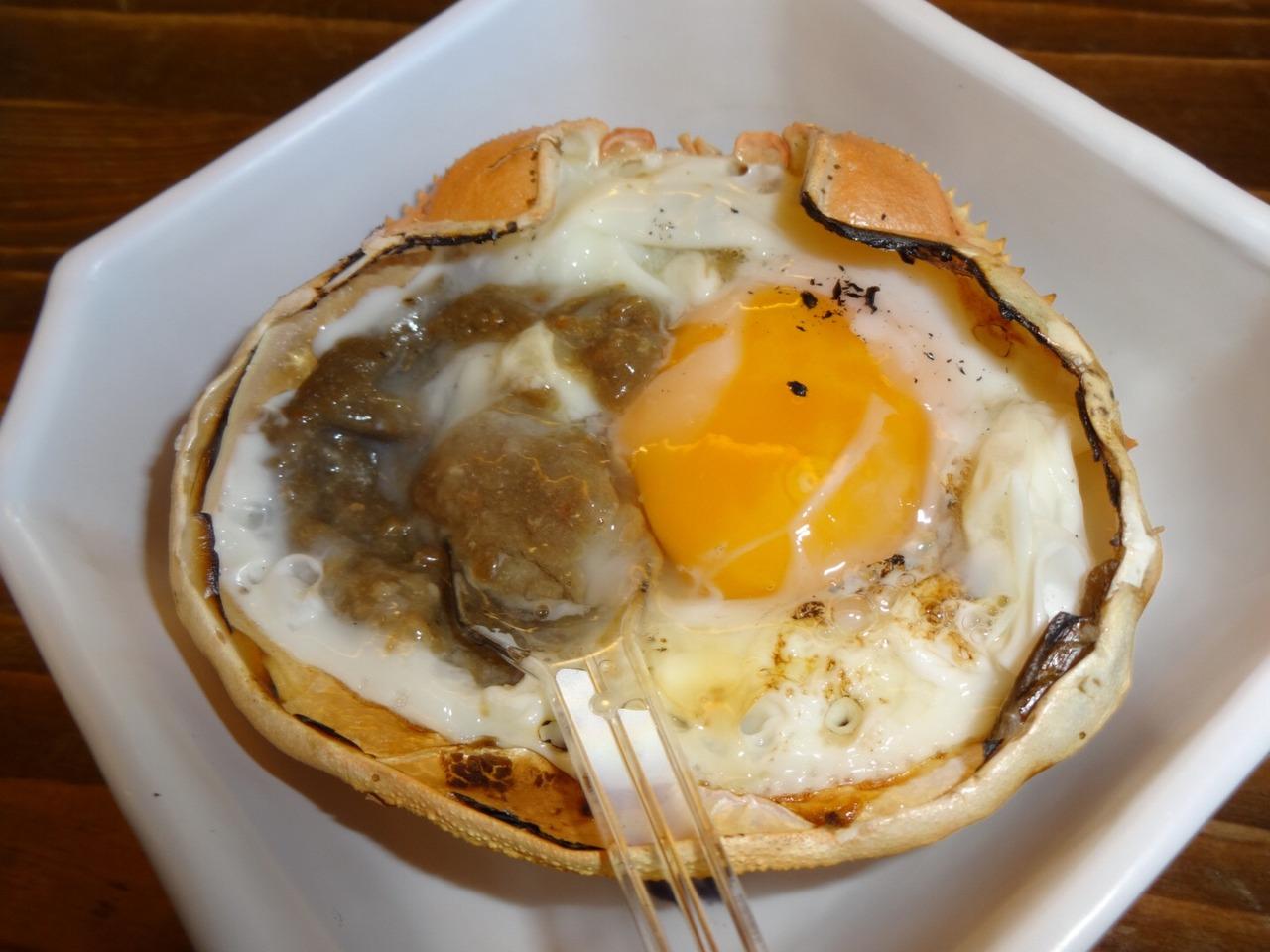 カニの甲羅にかにみそとたまごを入れて、直に焼いてるから香ばしさもあってめっちゃ美味しかった(*^^*)