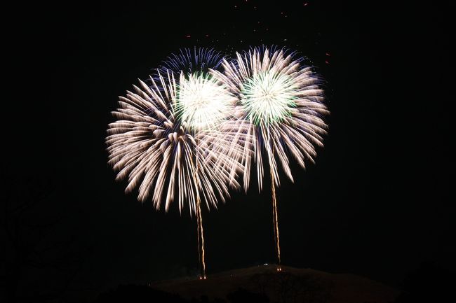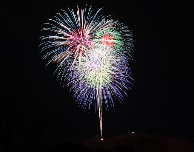 この他にもスターマインや、最後に空高く咲く大輪の花など、とても綺麗でした。高さのある大輪の花はカメラに入りきれませんでした。