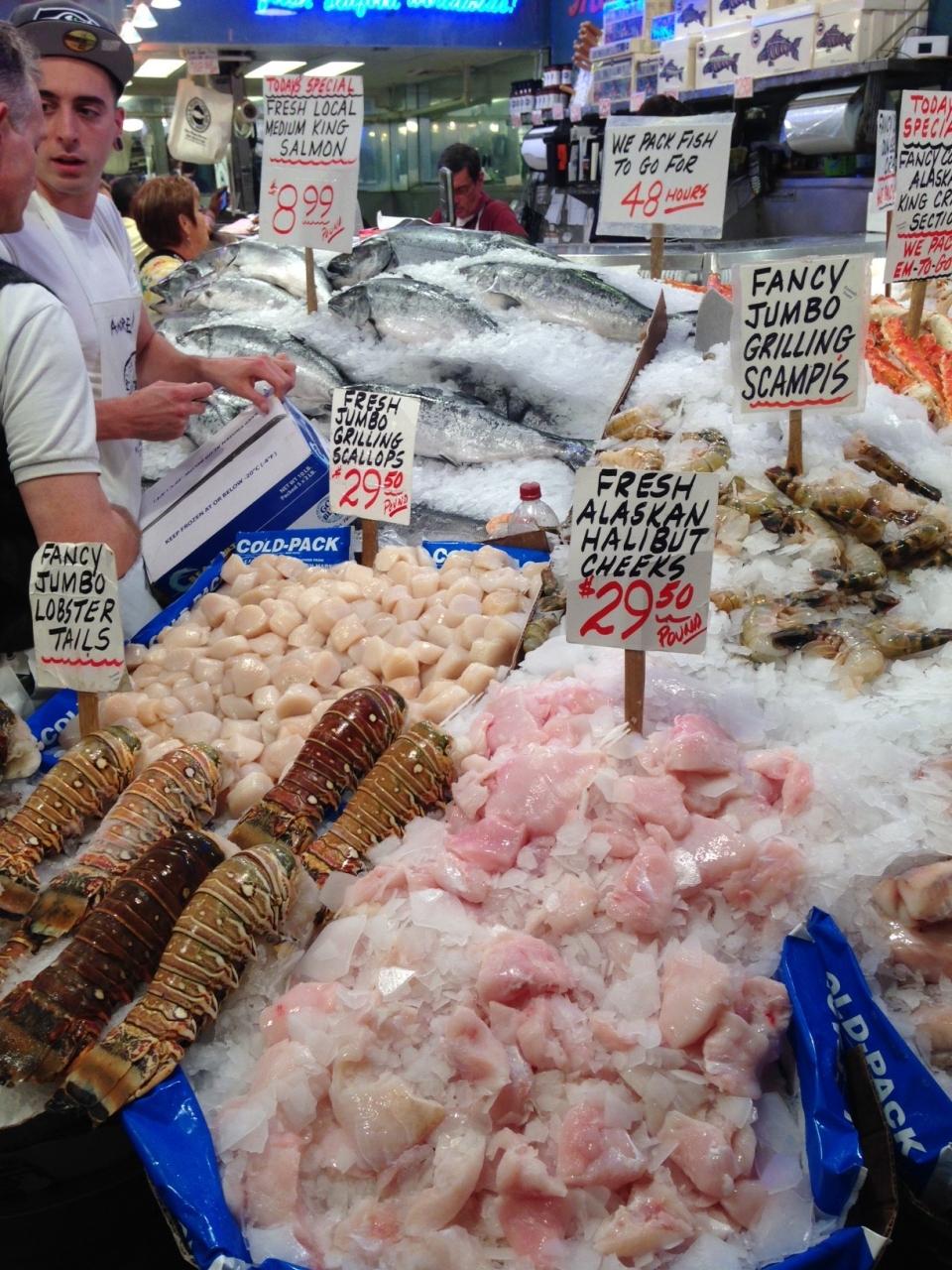 最初に見えるお店が、あの有名な大きな魚を投げるパフォーマンスの魚屋。