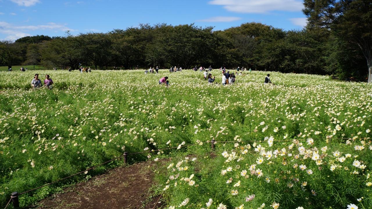 一週間前に行った時、花の丘のコスモスがまだ3〜5分咲だったので、