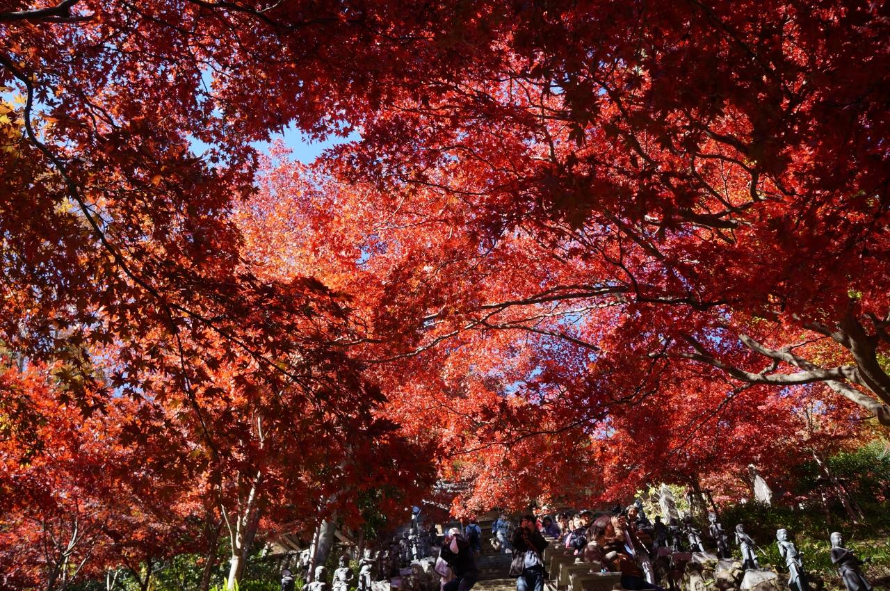 大山寺の参道を彩る真っ赤な紅葉を見に大山寺へ