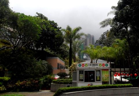 緑が一杯ですが、24時間眠らない香港の金融街のど真ん中なんだと感じさせられる高層ビル群が、木立の隙間と見上げたときに目に入ります。