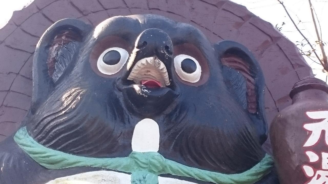 狸の大事なところが、くりぬかれお湯が出ていたのには、驚いた!!(^.^) -