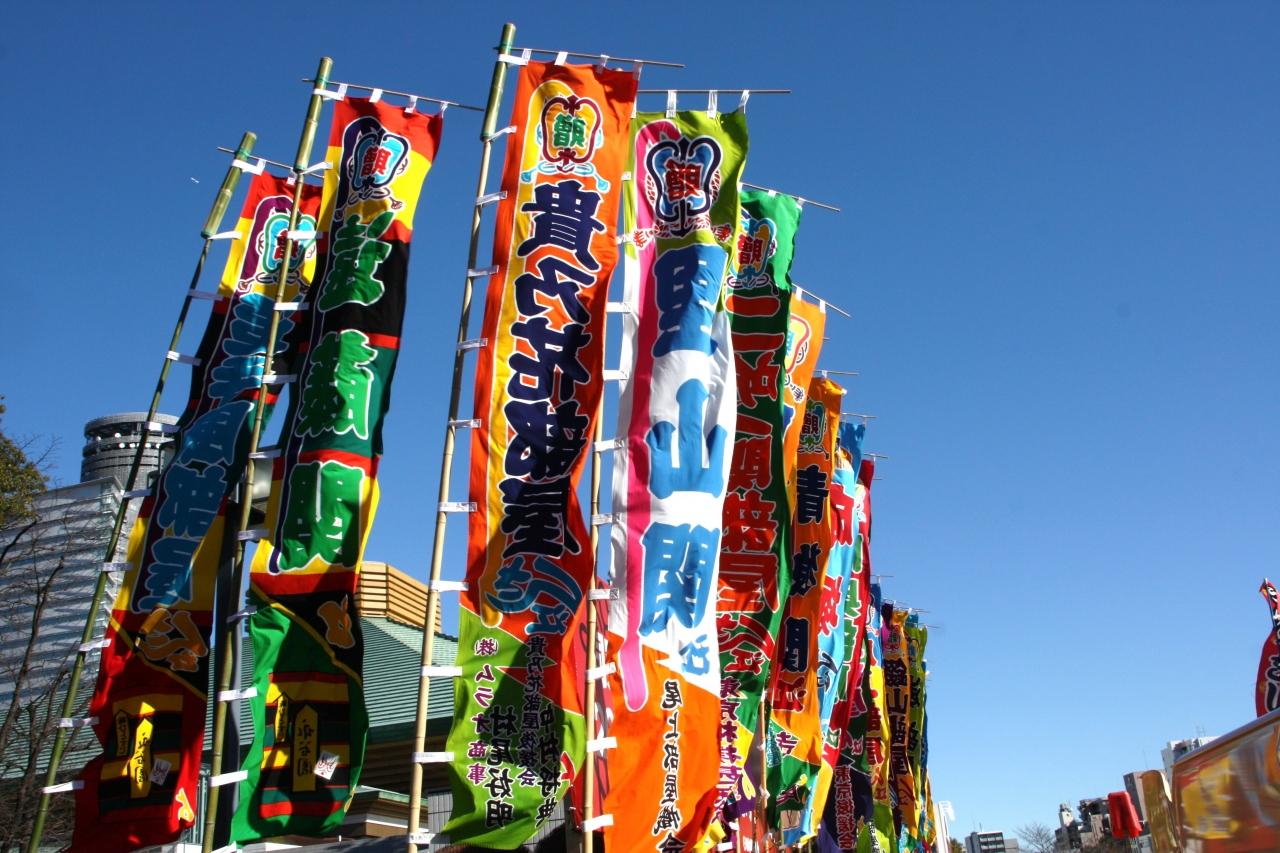 国技館前の力士”ノボリ旗”