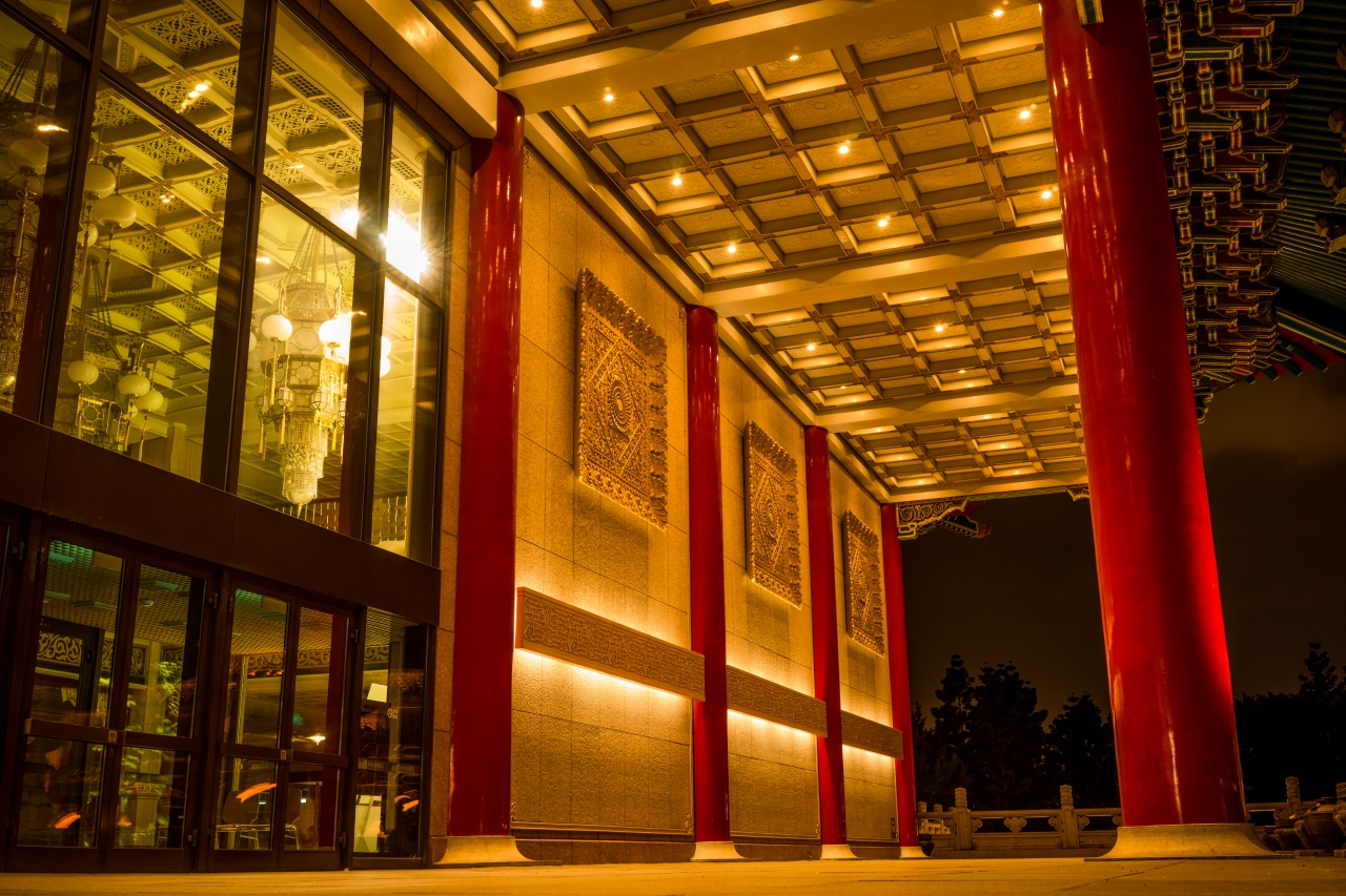 中正記念堂さんは地味系なライトアップなんですね(´Д`)