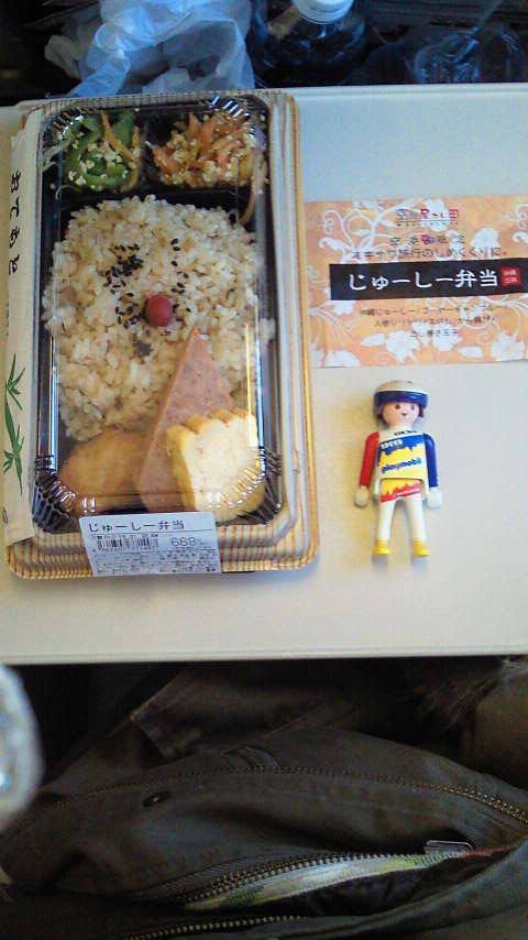 那覇空港から石垣空港への乗り継ぎ時間が短かったため、空港でお弁当を買って機内で食べました。ちなみに『じゅーしー』とは、沖縄の炊き込みご飯のことです。おかずはゴーヤチャンプルー、ポーク、人参しりしりなど、沖縄っぽいものだらけでした。