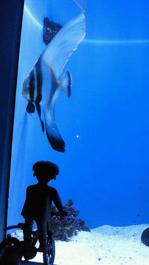 水槽をバックに撮影すると、ミール君までかなり幻想的に見えます。