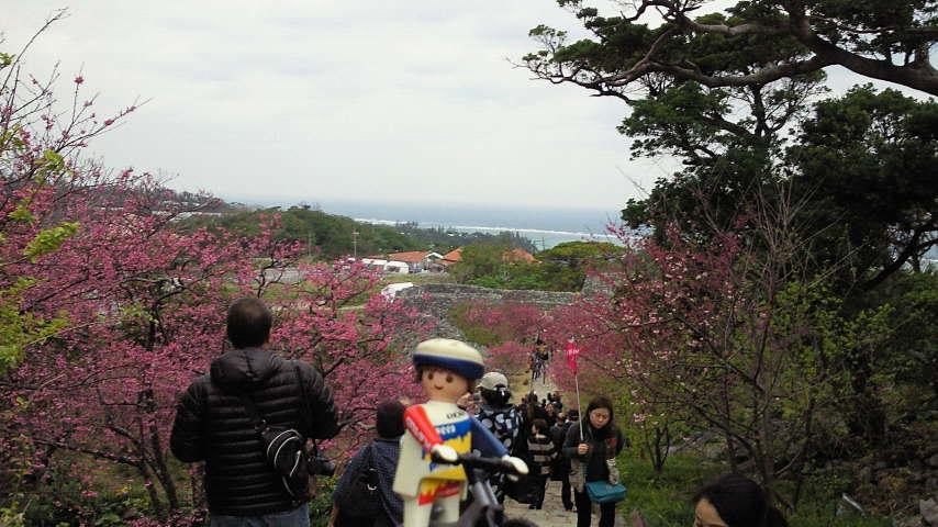 水族館の後は、ちょうどこの日から桜まつりが開催されていた今帰仁城跡に来ました。