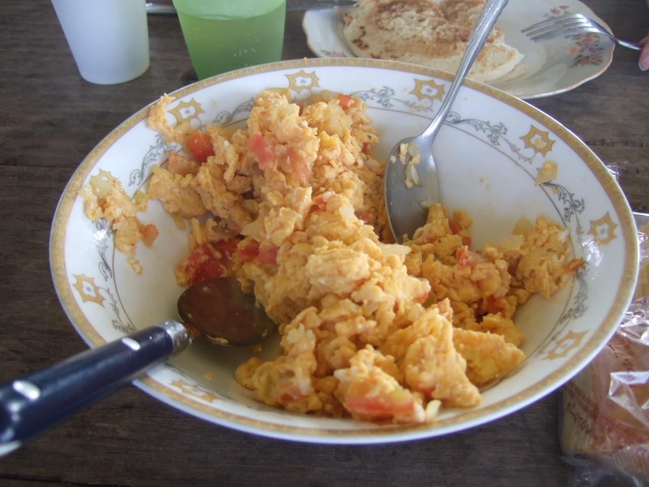 19:00、夕食。メニューは牛肉のソテー、ふかし芋、サラダ、マンゴー、焼きバナナ(?)。美味しい夕食でしたよ! 鶏肉じゃなかったし(笑)。(19:00-20:00)