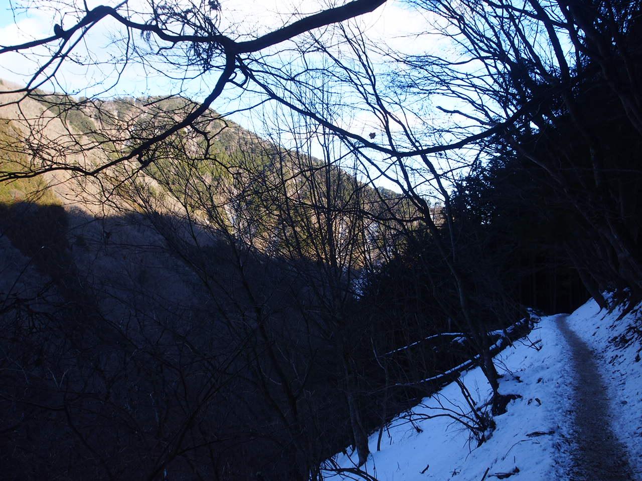 歩き始めて2時間余り。堂所過ぎた辺り、標高1,200mあたりの地点で腰を落として休憩。