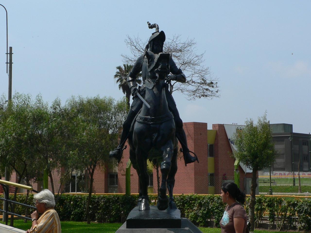 公園の一角にフランシスコ・ピサロの騎馬像。かつてはアルマス広場の方にあったらしいですが、侵略者と言う事で、こちらに移設されたとの事。