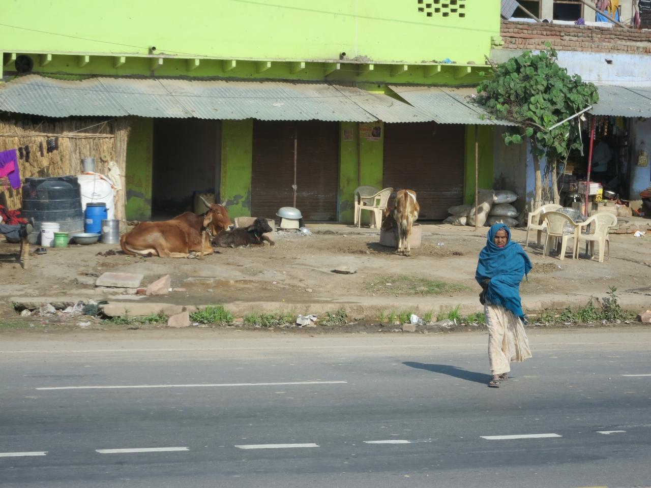 インドの街は至る所に放牧された牛や野良牛が道路の脇や道路を優々と歩いています。(放牧されている牛は自然に飼い主の元へ戻るそうです)