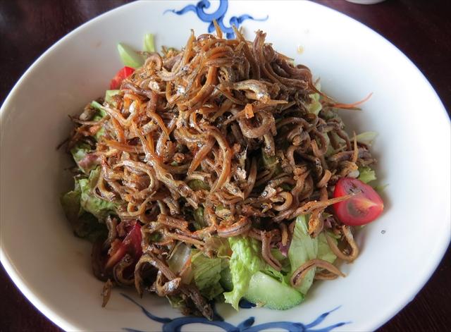 じゃこサラダ。素揚げのじゃこがもりもり乗っています。