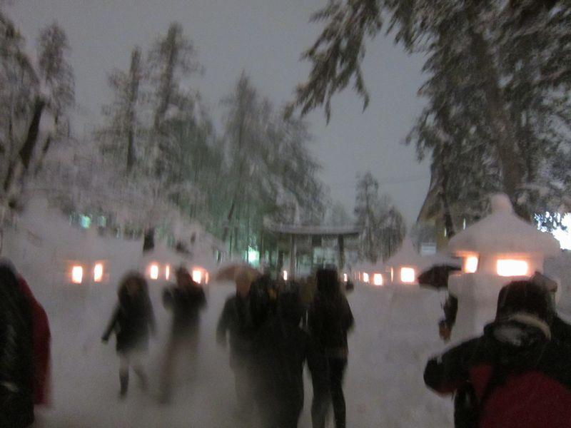 雪の降る中、久しぶりに夜の灯に包まれた幻想的な雰囲気を味わってきました。