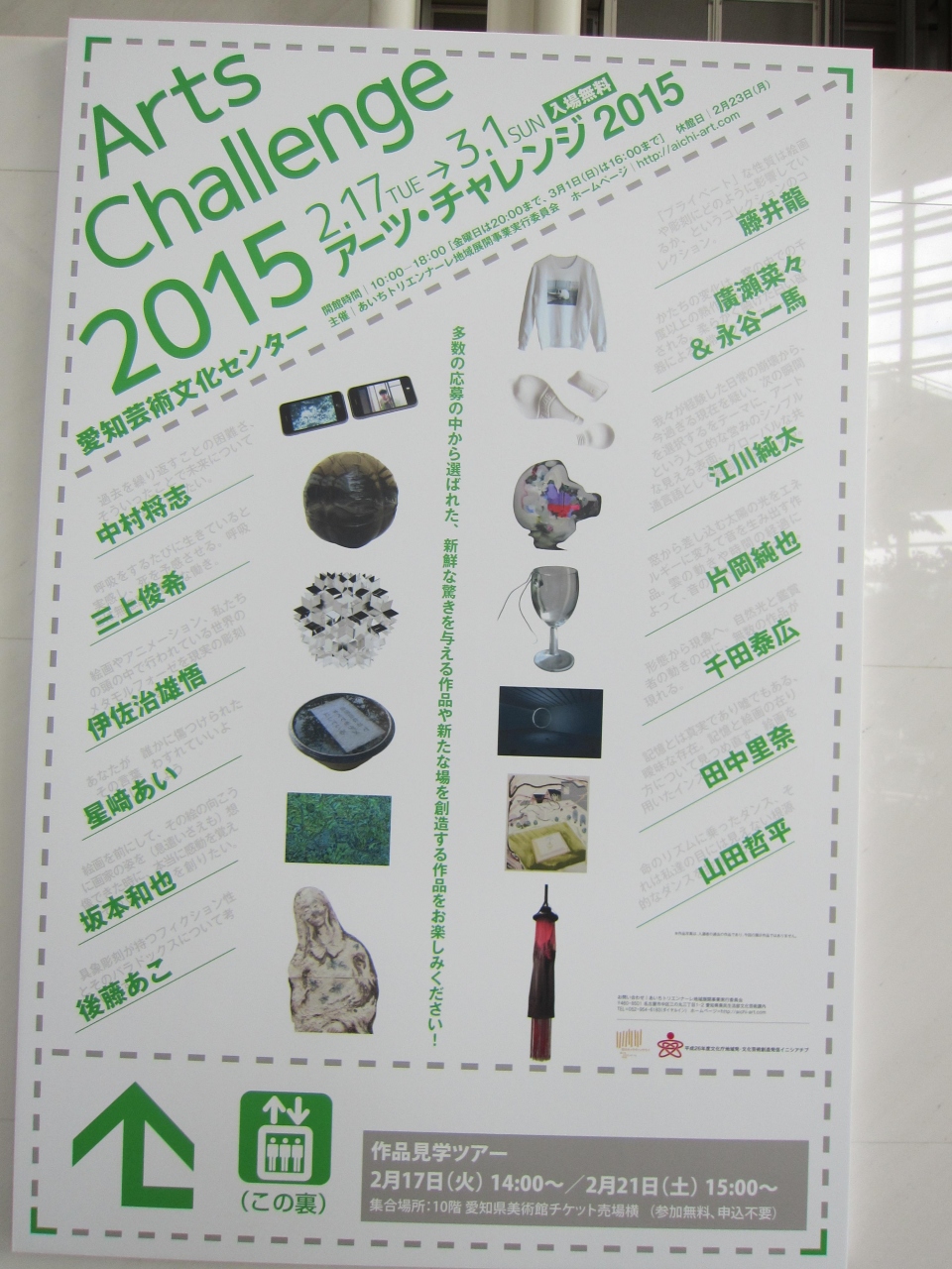 愛知県芸術創造センターで開催されたArts Callenge2015に行ってきました。若手の現代芸術家の作品が展示されていました。愛知県美術館のロイヤルアケデミー展は盛況でしたが、こちらは人が少なくて落ち着いて鑑賞できました。無料というのもうれしいです。