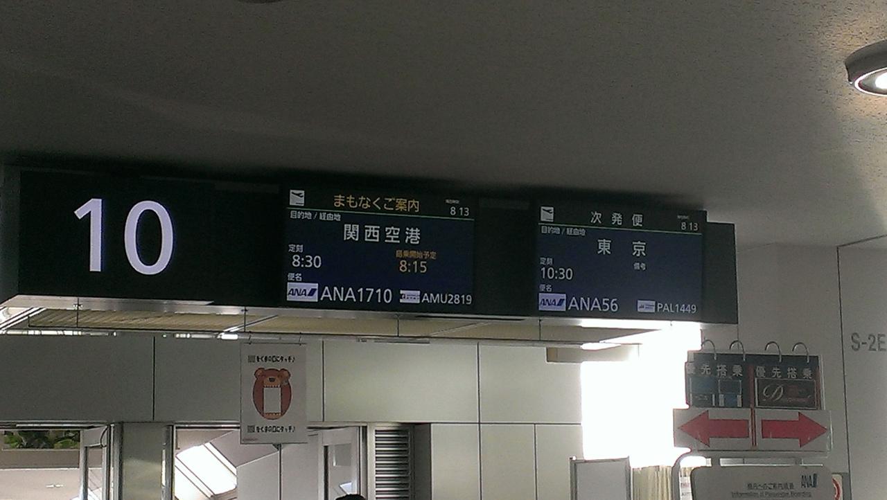 しばらく待ってると、定刻で飛ぶ旨の案内がありました。メールでも入ってくるしラウンジ内でも案内があるし、便利ですね。 -