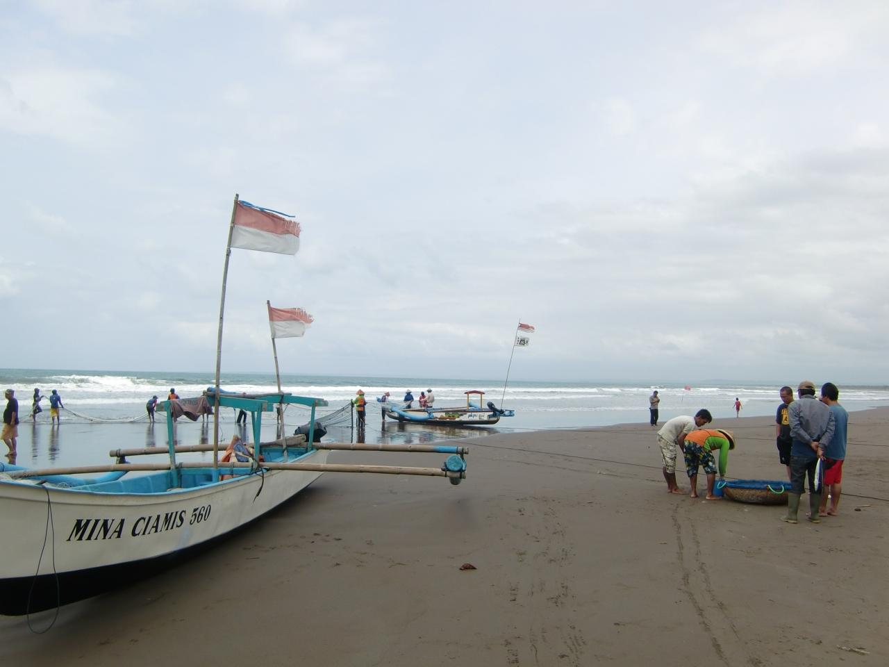 ビーチにで地引網をやっていたので見学。