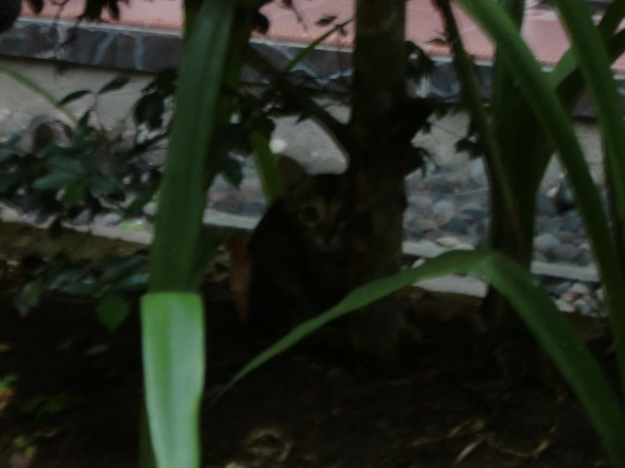 翌朝5時に目が覚めて、窓から部屋の前を見ると子猫が2匹遊んでいた。