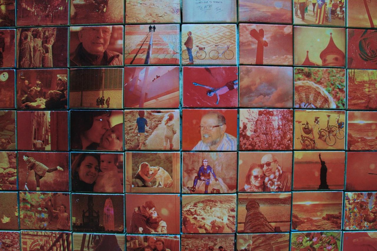 バルセロナ市民の「自由」をテーマに集められた写真4000枚をタイルにして、組み合わせた「ビッグキス」のフォトモザイク。 -