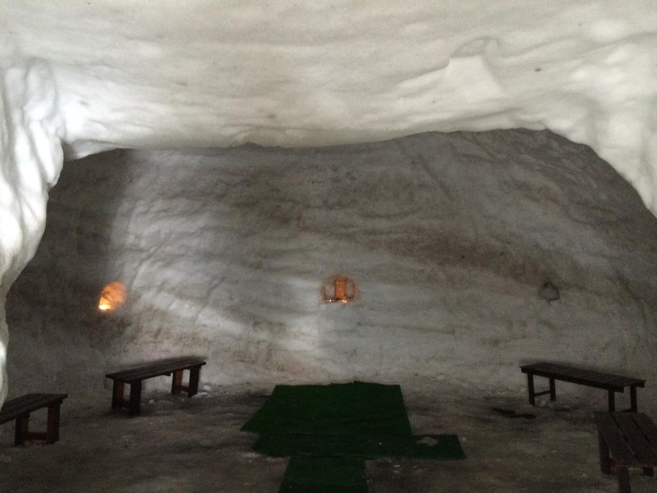 ランチのお店に置いてあったフリーペーパーに大かまくらがあるって書いてあったので、谷川岳ドライブインに寄ってみることに。
