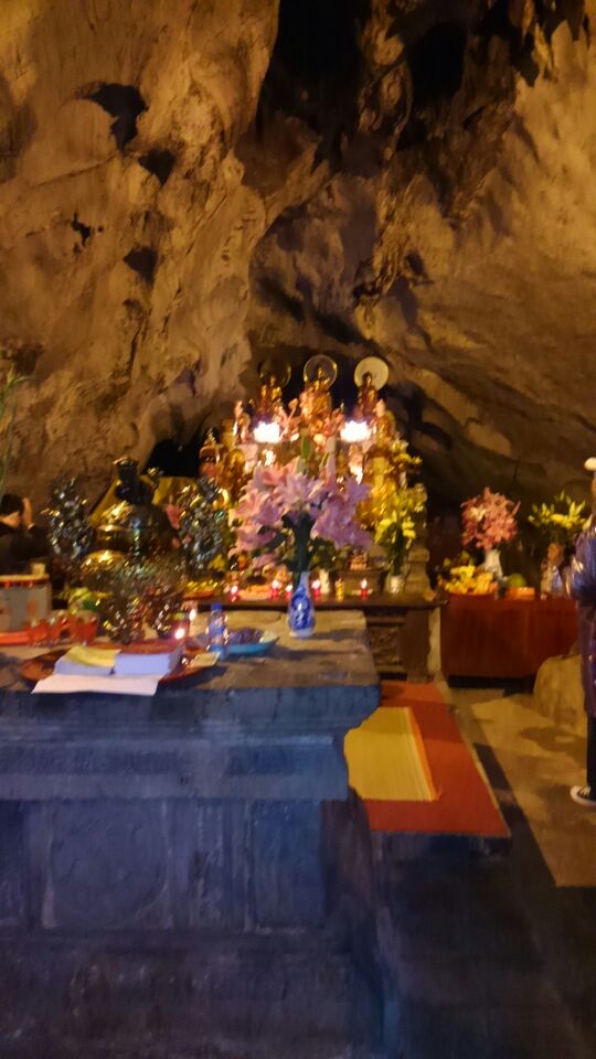 半開きのかなり広い洞窟で、奥行きも深い。その洞窟内のあちこちに祭壇があり、蝋燭の光が揺らめいている。又、焼香、線香の香りも漂う。確かに神秘的な空間だ。以前宮崎の鵜戸神社や、高千穂の賽の河原で同じような半円形の洞窟を見たが、ベトナムのここ、正式な名前は「ノイ・クイ」(NOI QUY)寺院と言うが、こちらの方がより幻想的で、奥行きも深い。