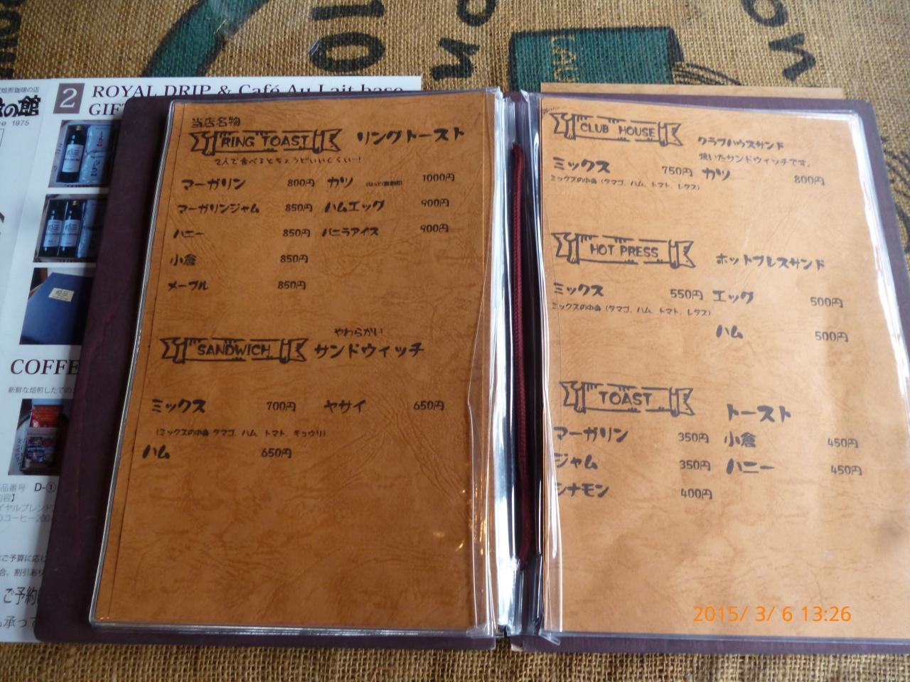 トーストとサンドイッチのメニュー