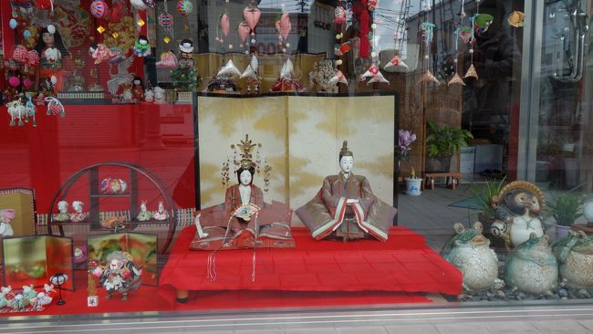 昨日催し物があったようですが、今日は月曜定休が多く、がらんとした街に、お雛様の赤がくっきりと浮かび上がる様でした。