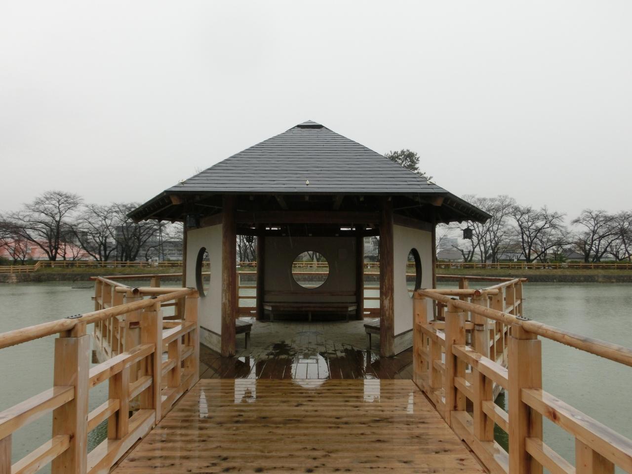 中堤真ん中の石の太鼓橋は加賀前田候の寄進と言われています