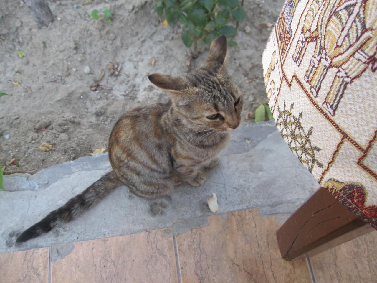ふと足元を見ると、分けてほしそうにじっとたたずむノラ猫。