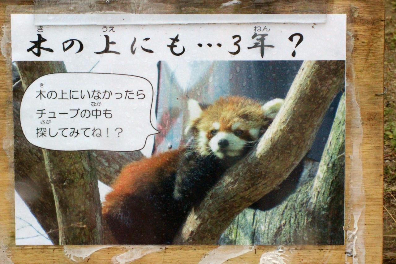 来園者がレッサーパンダを見つけやすいように、いくつか案内がありました。