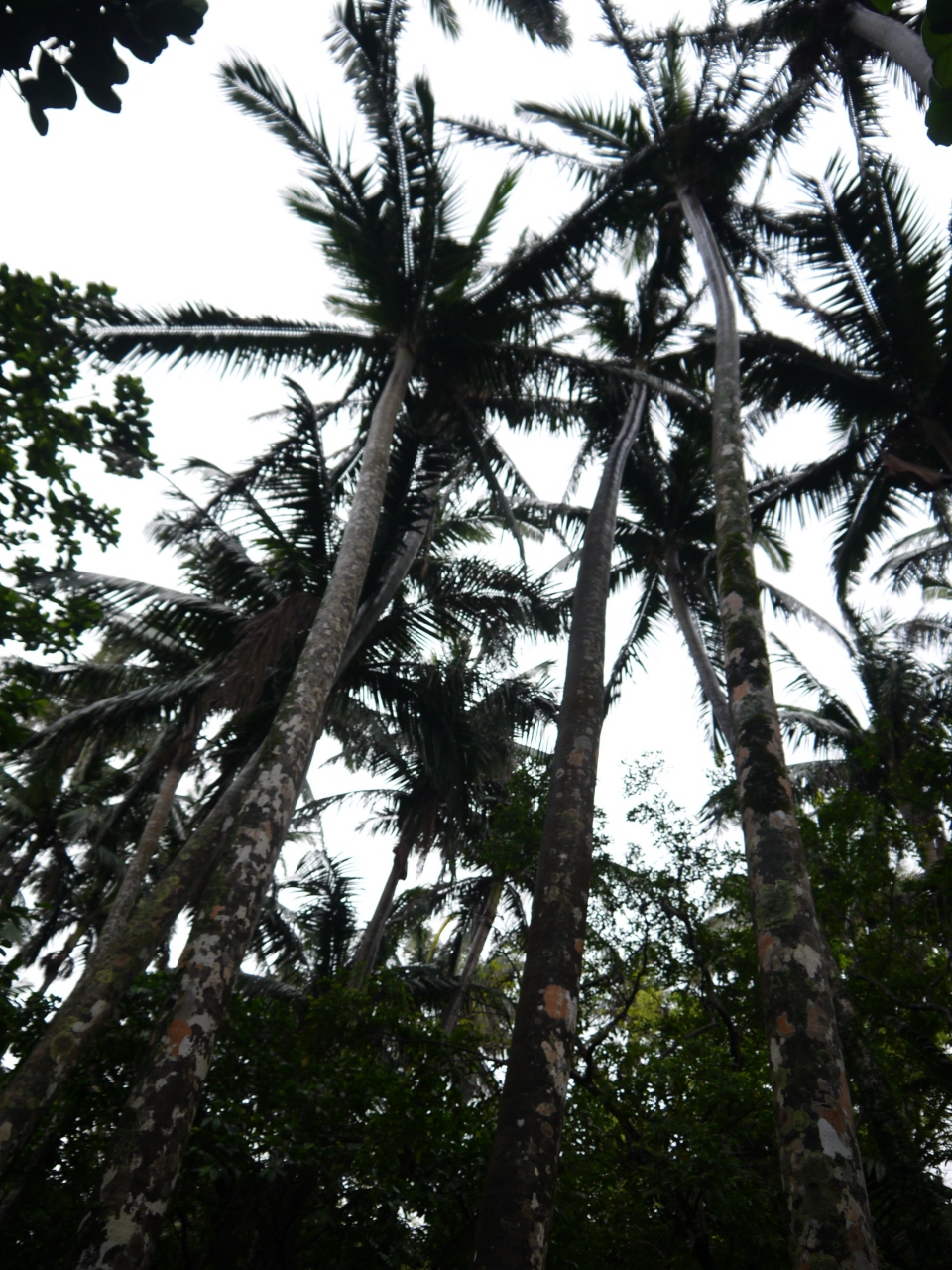 一本一本がすごく背が高い。父がヤシの実をみようと一生懸命探していましたが、ヤエヤマヤシの実は2から3センチ程みたいで、わたしたちのイメージするヤシノミとは異なるみたいです(笑)