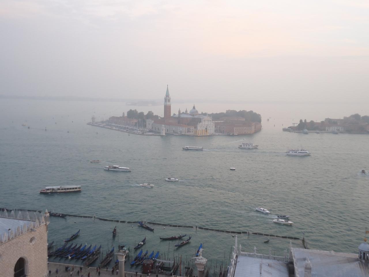 まだ日没まで少し時間があります、サンマルコ広場の鐘楼はエレベーターで上がれるので、早速行ってみることにしました。ラグーナと街が一望できます。