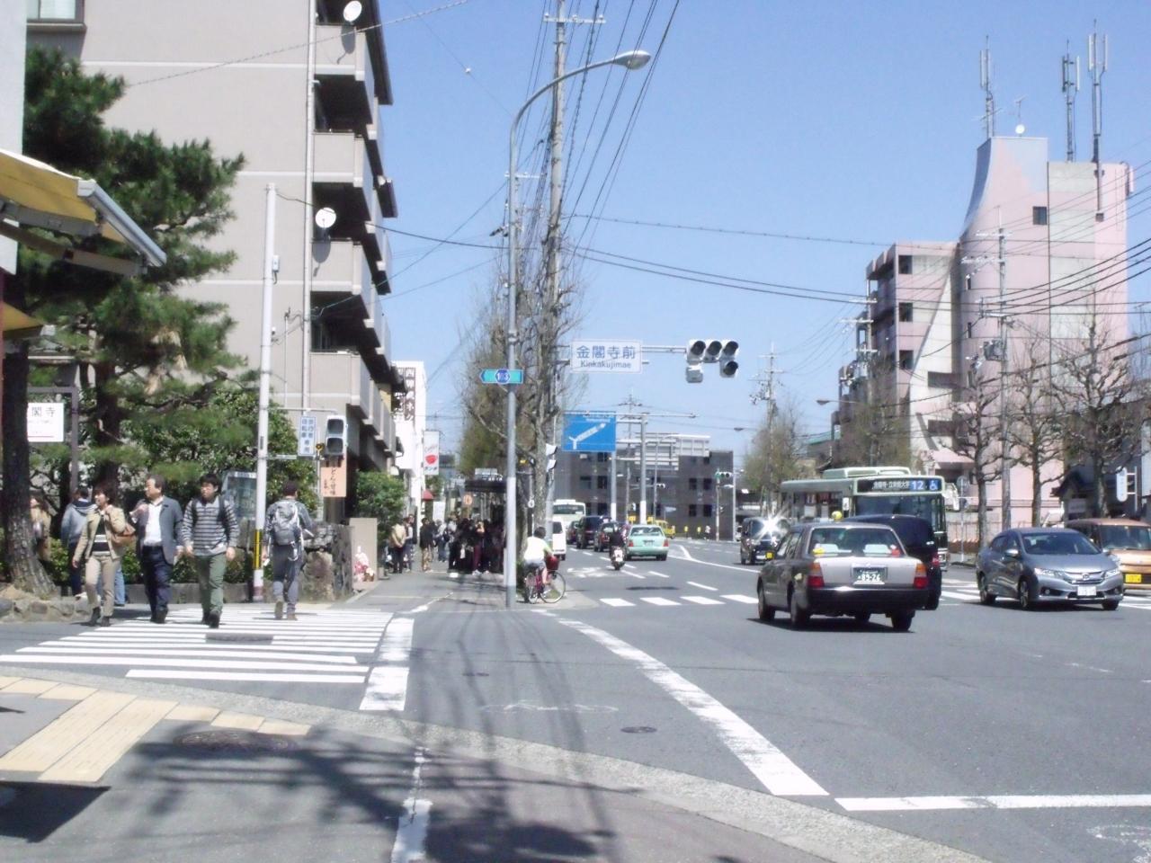 今日は快晴、地下鉄で今出川ー烏丸へやってきました。交差点の向こうは同志社大学です。 -