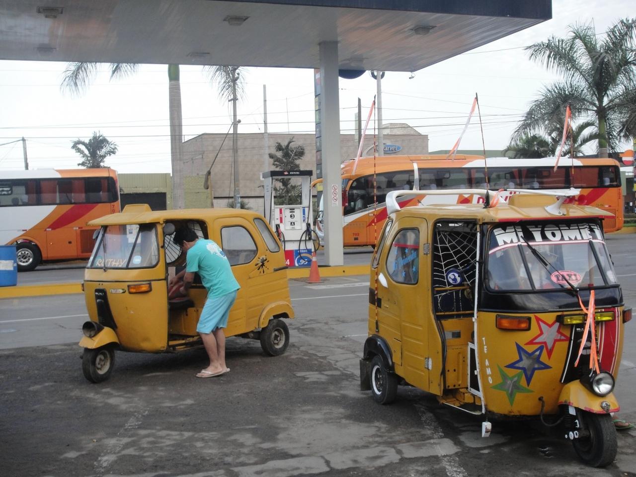 で…これはペルー版トゥクトゥク。砂漠地帯を走るので後部座席にドアが付いており、アジアのオープンタイプとは異なります。 -