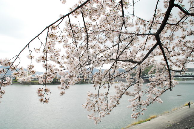 川沿いに咲く桜、遠くから眺めるのも良いかも。