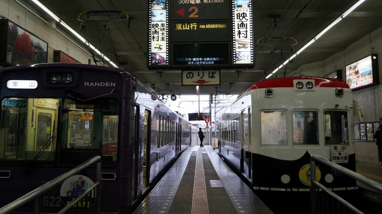 嵐山へは、阪急じゃなくて、四条大宮から嵐電こと京福電気鉄道で行きます。