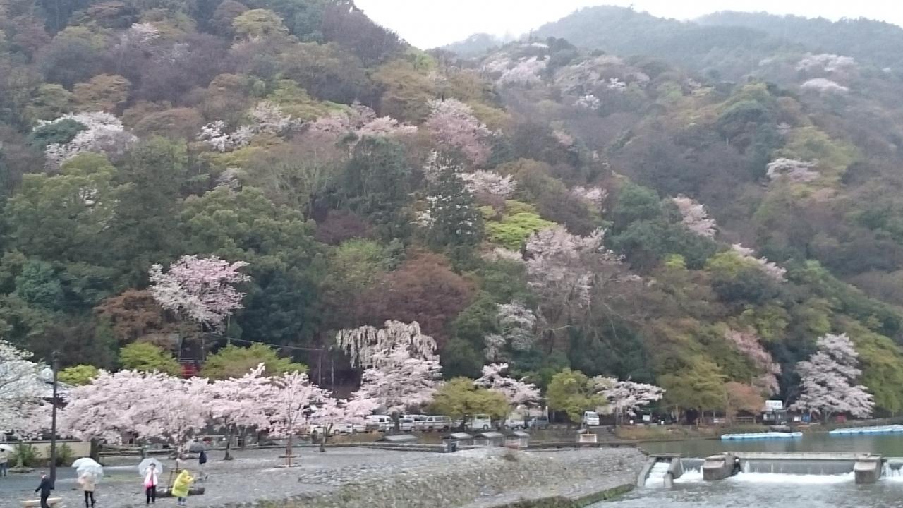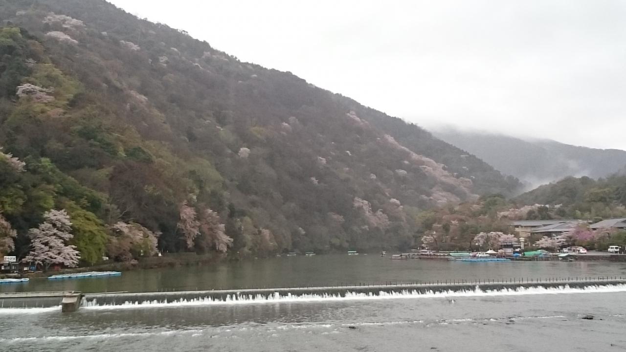 そして、大堰川(桂川)の向こう岸の山にも桜が咲いてて・・・きれいですね〜