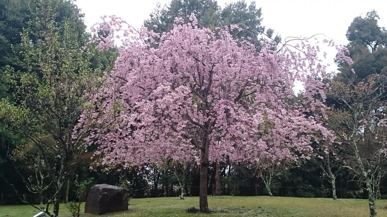 前の写真の桜は、福島の三春滝桜を移植した桜なんですよ。