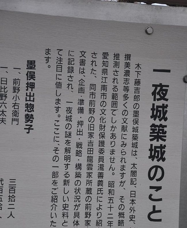 1561年ないし1566年の織田信長による美濃侵攻にあたって、木下藤吉郎がわずかな期間でこの地に城を築いたと伝えられている。これがいわゆる墨俣一夜城であるが、