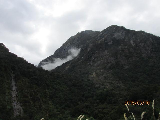 残念ながら山には霧雨がかかり、綺麗に見えない。