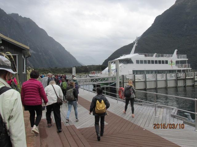 岩峰のトンネルを抜けた先の亜熱帯原生林を30分程散策し、そこから暫らく進むと海岸線に出る。ミルフォード・サウンドだ。英語の「サウンド(Sound)」は通常「音、音声」の意味だが、更に「入江、湾、瀬戸」といった意味もあり、ここは将にそのミルフォードのフョルドだ。入り江が深く食い込んでいて平地が少なく、ここには民家などはなく、ホテル、ロッジ等の宿泊施設もないので、一般の観光客は朝クイーンズタウンを出発し、昼前に到着し、約2時間の湾内クルーズをして、その足で、又元のクイーンズタウンへ戻るしかない。