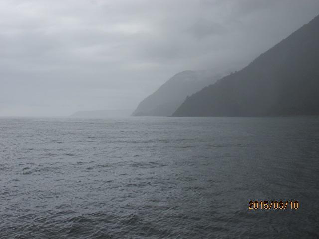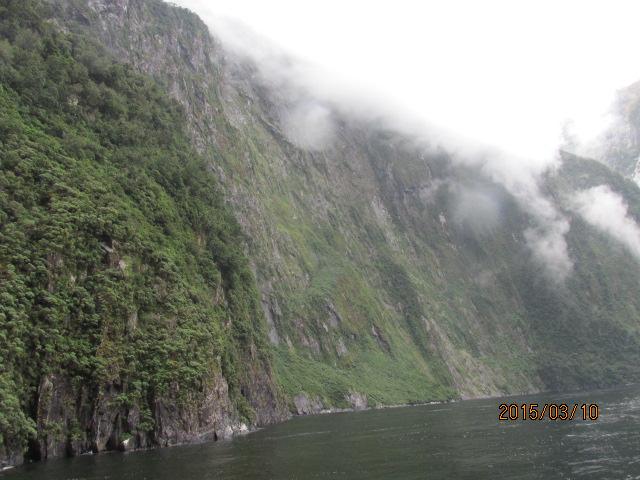 ミルフォード湾、典型的なフィヨルドの湾で、横幅は7−8キロか。最大見ても10キロは無いだろう。両側から切り立った山が迫っているが、氷河の浸食により、ストンと落ちている。その断崖絶壁を滴り落ちる幾条もの滝は野趣に富み、自然の景観を際立たせている。湾の奥行きが如何程あるか分からないが、駿河湾の比較からしても、30−40キロの奥行きがあるに違いない。クルーズ船は、その湾内を左側面に沿って進行し、或は右側に寄ったりして、様々な景観を楽しませてくれる。