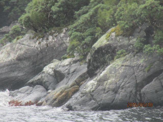 色黒のアシカが岩の上に寝そべっているが、艦内のアナウンスが無ければ気が付かなかったところだ。船が岩に近づき、回遊しても、どこ吹く風、知らんぷりして昼寝をしている。写真を撮って見るが、背景の岩に沈殿し、上手く撮れただろうか・・。人々もアナウンスを聞き、デッキに出てきては、デジカメを向けている。日本でもアシカがどこそこの海岸にやって来たりすると、ビッグニュースになり、連日テレビ放映されるが、ここでも自然愛護の精神は人類共通だ。