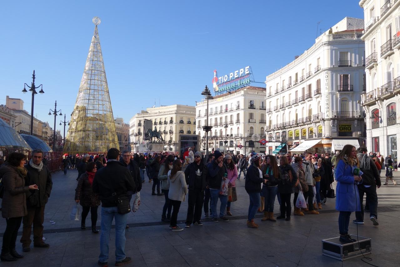 ソル広場までやって来た。写真の右端にテレビのレポーターさんが立っている。中継車もいたし、今夜の年越しブドウを中継するんだろうな。