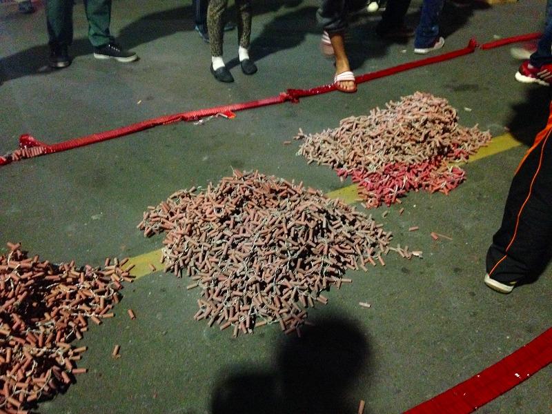 もう既に始まってて、爆竹の爆音が響いてます。 -