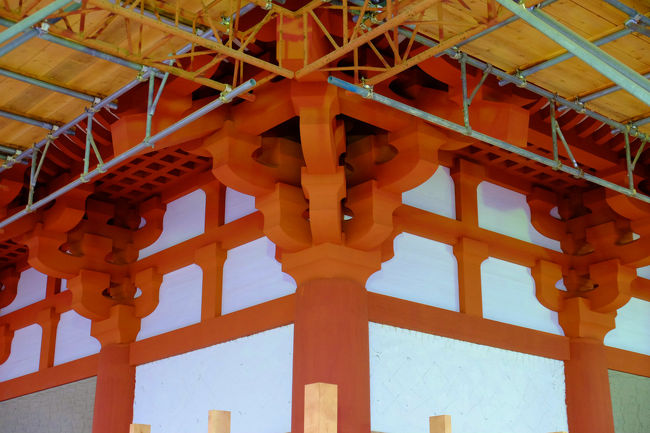 朱色に塗られた木組み、