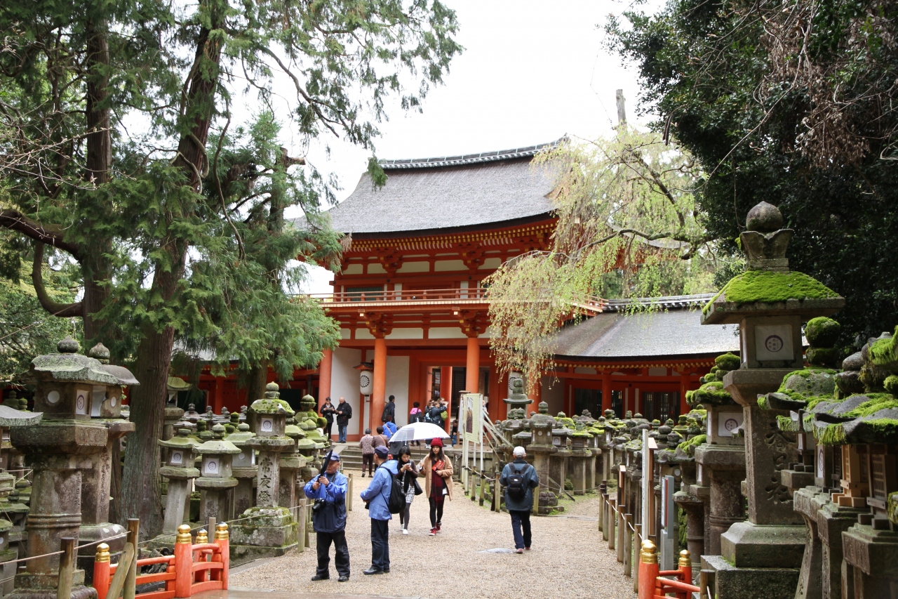 横一列に並ぶ四棟の春日造りのご本殿。厳かな気持ちにさせていただきました。