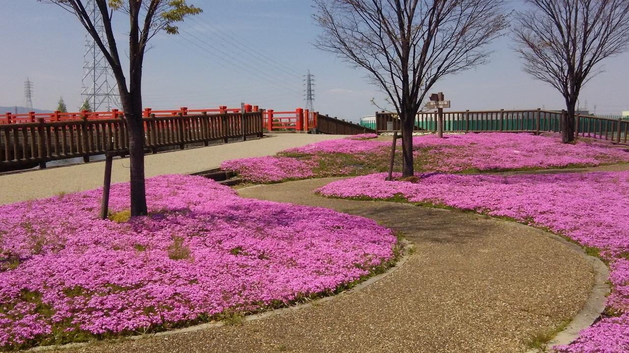 弥冨の三ツ又池公園に芝桜が満開でした。